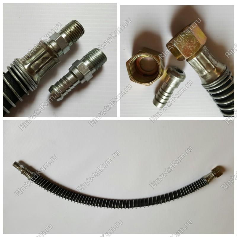 Шланг тормозной 455 мм (ГАЙКА S24 М20 х1.5 / ШТУЦЕР 1/4 конус) в пружине МАЗ ГОСТ